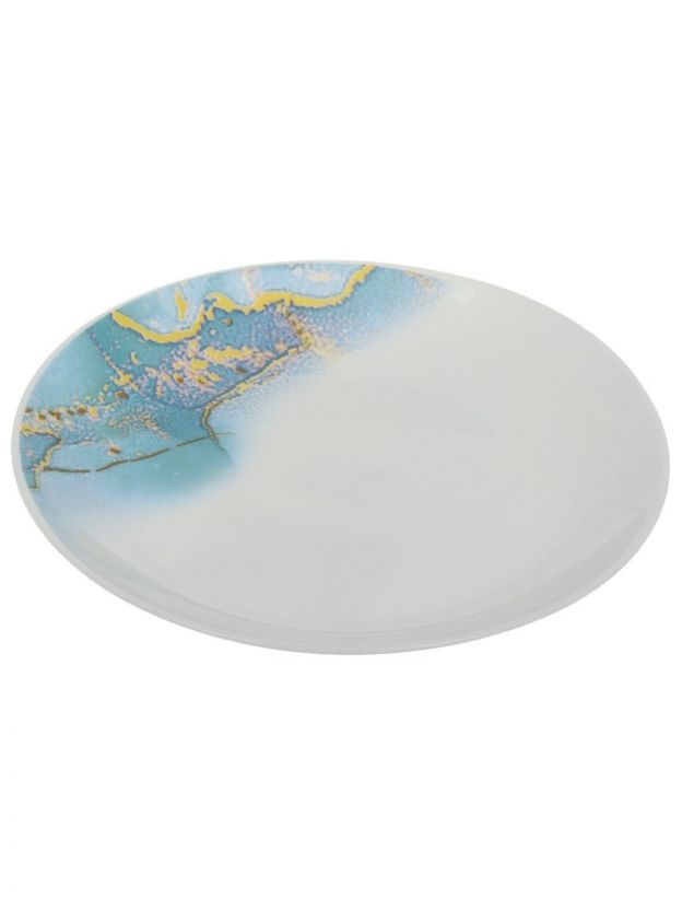 Десертная тарелка Daniks Флюид 19 см: стильная стеклокерамика под мрамор, подходит для сервировки, подарка и повседневного использования. Легко мыть, устойчива к царапинам.