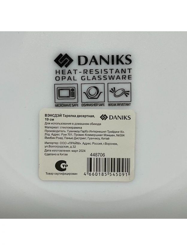 Тарелка десертная, стеклокерамика, 19 см, круглая, Вэнсдей, Daniks, BY23LHP75