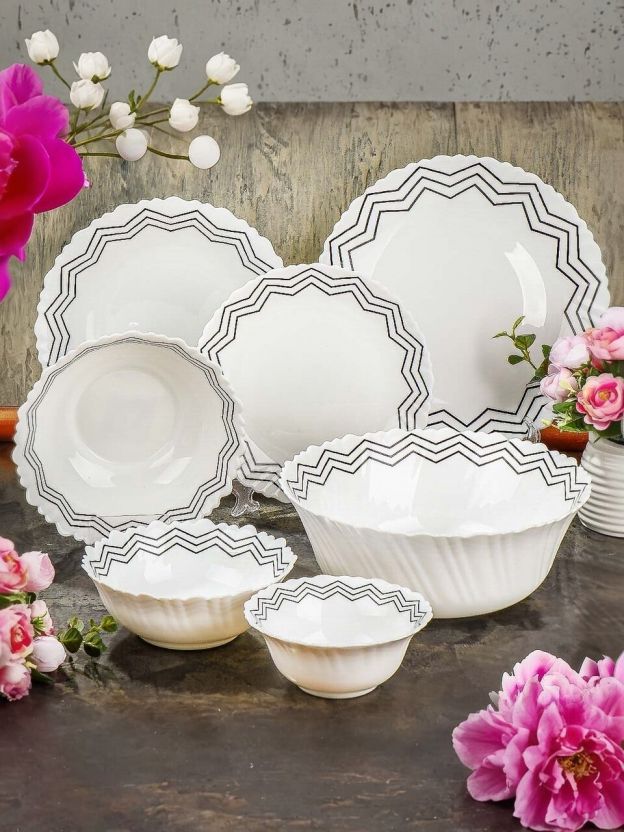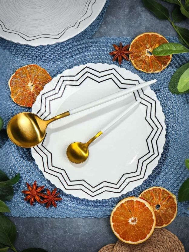 Десертная тарелка Daniks Вэнсдей диаметром 19 см — это гармония стиля и практичности. Изготовлена из стеклокерамики: материал не впитывает запахи, устойчив к сколам, подходит для ежедневного использования и мытья в посудомоечной машине. Белый фон с современным геометрическим рисунком эффектно смотрится как на праздничной сервировке, так и в повседневной обстановке.