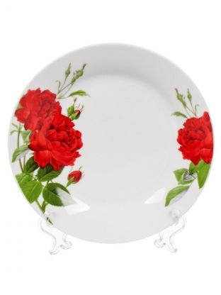 Тарелка обеденная, керамика, 20 см, круглая, Алая роза, Daniks, 19-291#
