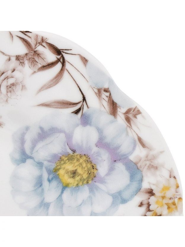 Тарелка выполнена из керамики, имеет круглый контур и украшена цветочным рисунком из коллекции Daniks Флорина.