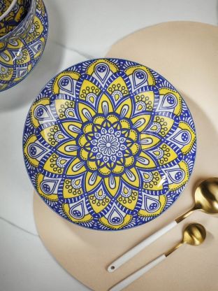 Обеденная керамическая тарелка Мантра диаметром 23 см — это сочетание эстетики восточного орнамента и функциональности. Благодаря прочной керамике, изделие выдерживает ежедневное использование, сохраняя насыщенный синий цвет и рисунок. Для тех, кто ищет, какую тарелку выбрать для сервировки или как выбрать керамическую посуду для дачи, модель Y6-6016 станет оптимальным решением: ее удобно использовать для горячих и холодных блюд, а также разогревать пищу в СВЧ.