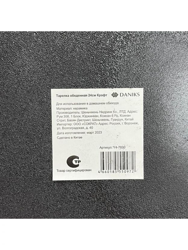 Тарелка обеденная Daniks Крафт 24 см: стильная керамика для сервировки, подходит для СВЧ и посудомоечной машины. Идеальный выбор для дома и дачи.
