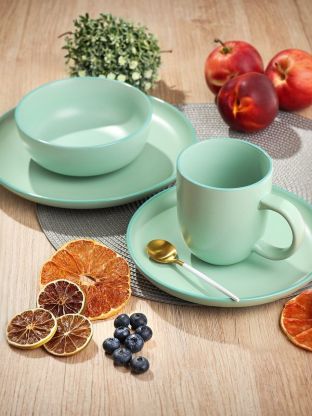 Обеденная тарелка из керамики Domenik Macarons диаметром 24 см — это универсальное решение для сервировки стола дома и на даче. Благодаря прочной керамике без рисунка, изделие устойчиво к сколам и легко переносит частое мытьё в посудомоечной машине. Мятный однотонный цвет коллекции Macarons добавляет свежести сервировке, а круглая форма удобна для подачи как основных блюд, так и закусок.