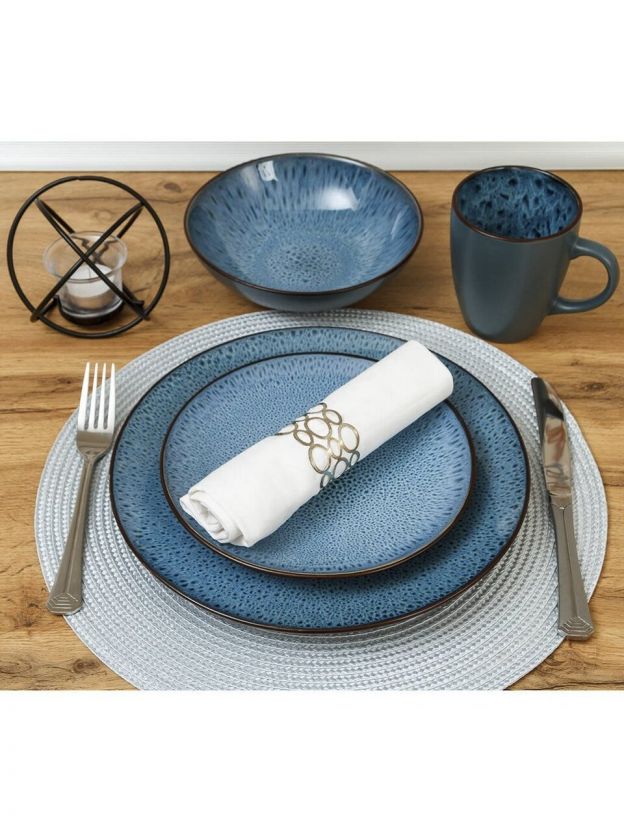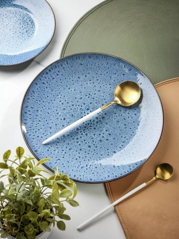 Диаметр — 27 см, форма — круглая, цвет — синий с крапинкой. Подходит для обеда, закусок, сервировки и ежедневного использования.