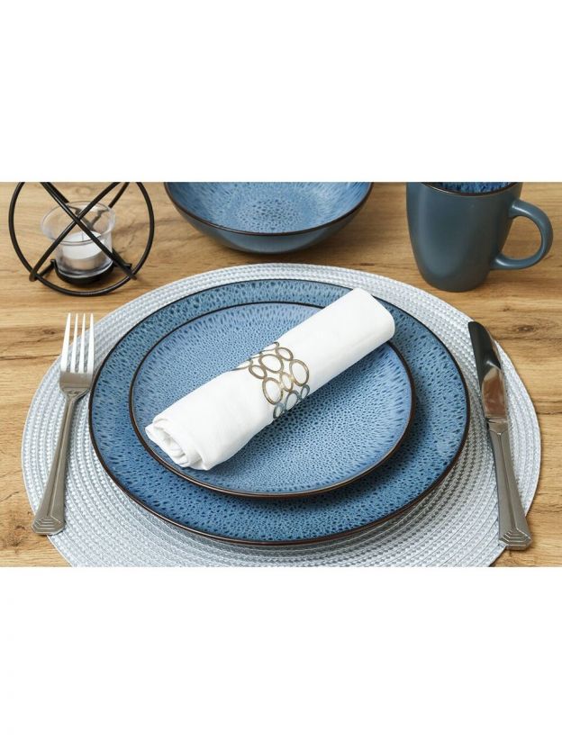 Диаметр — 27 см, форма — круглая, цвет — синий с крапинкой. Подходит для обеда, закусок, сервировки и ежедневного использования.