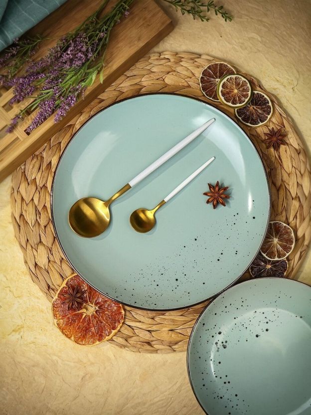 - Уникальный дизайн: голубая керамика с крапинкой оживит любую сервировку, создавая атмосферу уюта и современности