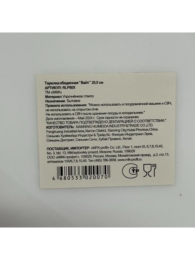 Обеденная тарелка из стеклокерамики 20,5 см: универсальное решение для сервировки стола дома и на даче, устойчива к царапинам и подходит для СВЧ.