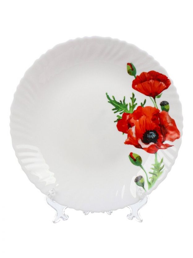 Тарелка обеденная Daniks «Алый мак» 24 см — эффектная стеклокерамика для стильной сервировки, подходит для дома, дачи и подарка. Легко мыть, можно использовать в СВЧ.