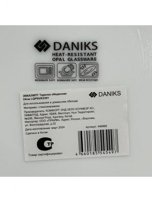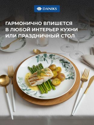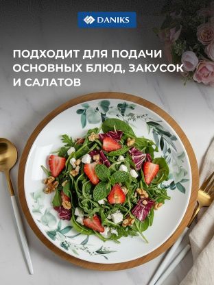 Тарелка обеденная Daniks Эвкалипт 24 см — стильная стеклокерамика для сервировки дома и дачи, подходит для посудомоечной машины и СВЧ, выгодная цена.