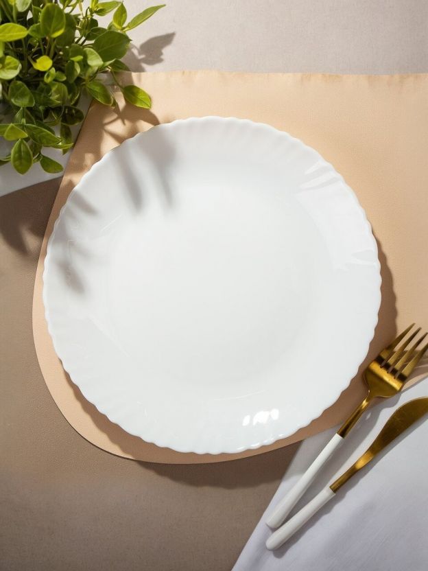 Обеденная тарелка из стеклокерамики 24 см: универсальное решение для сервировки стола дома и на даче. Без рисунка, подходит для СВЧ и посудомоечной машины.