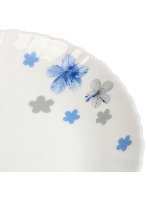 Модель «Вуаль» выполнена из прочной стеклокерамики, устойчива к царапинам и сколам, имеет стильный цветочный декор и универсальный размер 24 см.