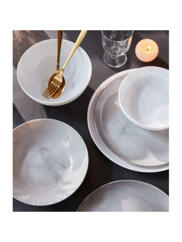 - Уникальный дизайн под мрамор — современный акцент на любом столе, легко сочетается с посудой разных коллекций