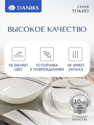 Если вы ищете, какую тарелку выбрать для ежедневного использования или сервировки на праздник, обратите внимание на стеклокерамику: она легче и долговечнее традиционной керамики, не впитывает запахи и устойчива к сколам. В отличие от классических круглых тарелок, квадратная форма Daniks Tokyo смотрится эффектно и экономит место при хранении. Подходит ли эта тарелка для горячих блюд? — Да, стеклокерамика безопасна для подачи и разогрева любых продуктов.