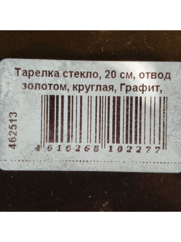 Материал — стекло, диаметр — 20 см, форма — круглая, цвет — чёрный с золотой каймой, использование в СВЧ — нет, можно мыть в посудомоечной машине.