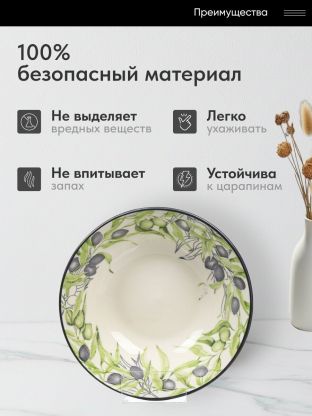 Тарелка суповая, фарфор, 18 см, круглая, Оливки, МФК, MFK07998/MFK20503