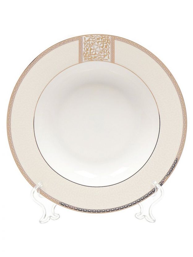Тарелка суповая Dynasty Fioretta 23 см — фарфор с золотой каймой: стиль для любого стола, долговечность и идеальный размер для первых блюд.