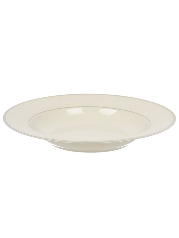 Диаметр 23 см, круглая форма, фарфор, белый цвет с узором, высота и глубина оптимальны для первых блюд и закусок. Количество в комплекте — 1 штука.