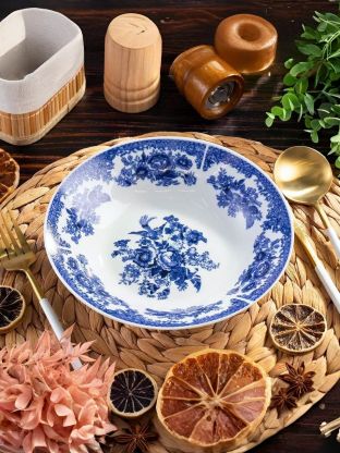Многие спрашивают: «Чем отличается керамическая тарелка от фарфоровой или стеклянной?». Керамика лучше сохраняет тепло, не царапается приборами и надолго сохраняет яркость рисунка. Подходит ли эта тарелка для микроволновки? Да, она полностью безопасна для СВЧ-печей и не теряет своих свойств при частом использовании. Если вы ищете, какую суповую тарелку выбрать для дачи или подарка, обратите внимание на коллекцию Жар-Птица — узнаваемый синий узор и универсальная форма впишутся в любой интерьер.