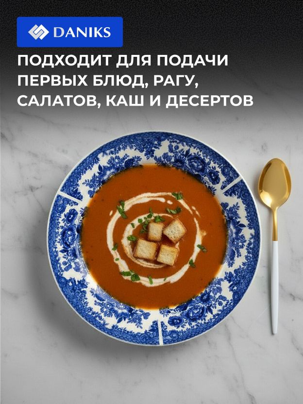 Тарелка суповая Daniks Жар-Птица 20 см — стильная керамика с гжельским узором для уютных обедов дома и на даче. Безопасна для СВЧ и посудомоечной машины.