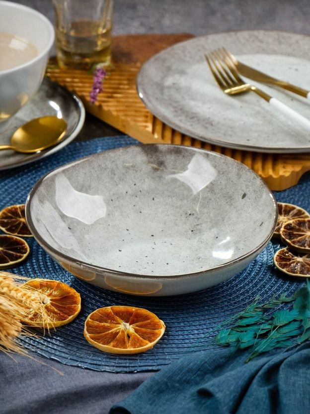 Суповая тарелка Domenik Stone Dark диаметром 20 см — это универсальный выбор для сервировки горячих супов, рагу, каш и даже салатов. Керамика с эффектом камня не только эстетична, но и устойчива к сколам, что особенно важно для ежедневного использования. Если вы ищете, какую тарелку выбрать для сервировки на каждый день, обратите внимание на эту модель: она не впитывает запахи и легко очищается даже после наваристых блюд.