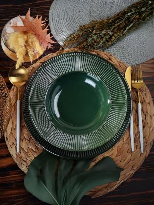 Тарелка суповая Domenik Emerald Green 24 см: стильная керамика для сервировки, подходит для СВЧ и посудомоечной машины, выгодно купить для дома и дачи.