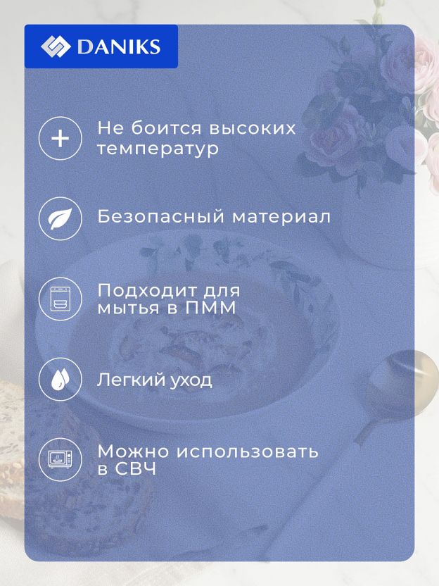 Если вы ищете, чем отличается стеклокерамическая тарелка от обычной — обратите внимание на её устойчивость к микротрещинам и возможность использования в СВЧ-печи. Тарелка Daniks не требует особого ухода: подходит для мытья в посудомоечной машине, не боится перепадов температуры и не тускнеет со временем.