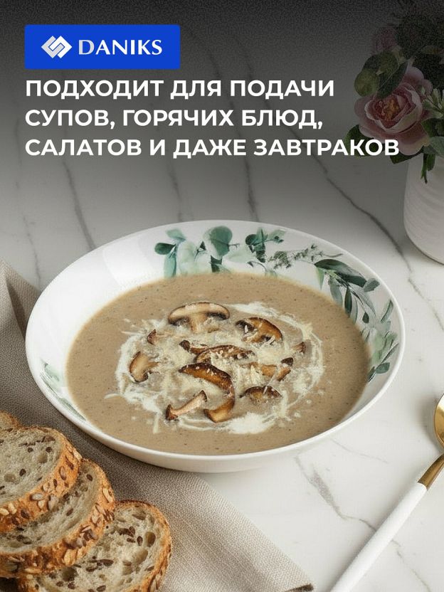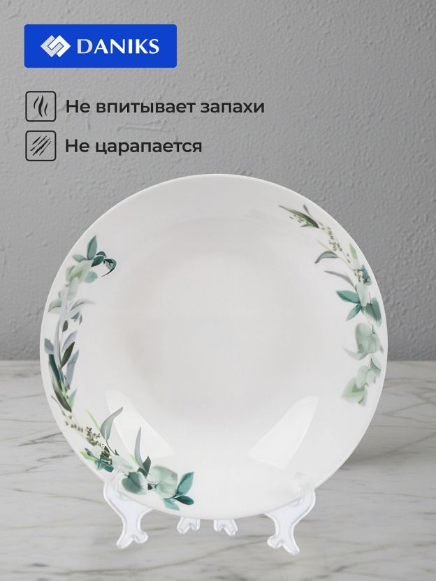 Тарелка суповая Daniks Эвкалипт 20 см — стильная стеклокерамика для сервировки и ежедневного комфорта: объём 700 мл, подходит для СВЧ и посудомоечной машины.