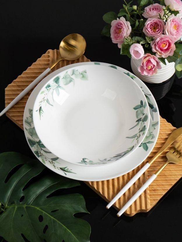Дизайн с растительным орнаментом «Эвкалипт» — современное решение для стильной сервировки и уютных обедов