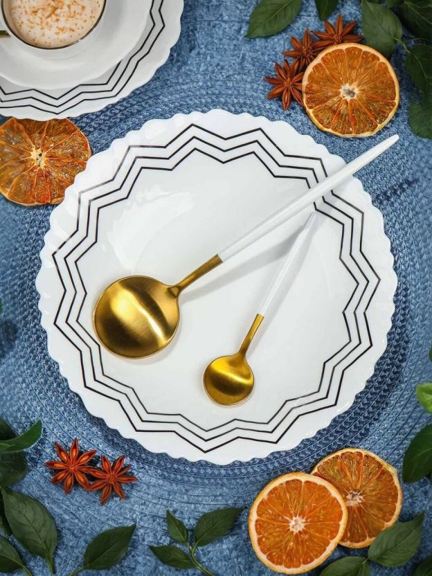Суповая тарелка Daniks Вэнсдей 21 см — универсальное решение для дома и дачи: стеклокерамика, стильный дизайн, подходит для СВЧ и посудомоечной машины. Почему выбирают: Уникальный дизайн коллекции Вэнсдей с геометрическим узором — стильная сервировка для любого стола Оптимальный размер: диаметр 21 см, объём 0,6 л, прочная стеклокерамика — долговечность и безопасность Идеальный вариант для дома, дачи или подарка — подходит для супов, каш, вторых блюд, универсальное использование Тарелка суповая Daniks Вэнсдей 21 см — это современная стеклокерамическая посуда для сервировки первых и вторых блюд. Благодаря универсальному объёму 0,6 л и глубокой форме, тарелка подходит для супов, рагу, каш и даже салатов. Модель выполнена из стеклокерамики, что обеспечивает устойчивость к перепадам температуры и позволяет использовать изделие в микроволновой печи и посудомоечной машине. Если вы ищете, какую суповую тарелку выбрать для ежедневного использования или для сервировки на даче, обратите внимание на этот вариант — он сочетает эстетичный внешний вид с практичностью. В отличие от классических керамических или фаянсовых тарелок, стеклокерамика более устойчива к сколам и сохраняет внешний вид даже при интенсивном использовании. Белый цвет с лаконичным узором гармонично впишется в любой интерьер. Часто спрашивают, подходит ли такая тарелка для горячих и холодных блюд — да, материал не впитывает запахи и легко очищается. Модель Daniks Вэнсдей — отличный ответ на вопрос «что лучше для сервировки супа на каждый день». Оцените преимущества покупки онлайн: закажите суповую тарелку Daniks Вэнсдей по выгодной цене с быстрой доставкой. Сделайте выбор в пользу долговечной посуды — добавьте стиль и удобство на вашу кухню. Частые вопросы: Можно ли мыть тарелку в посудомоечной машине? Да, суповая тарелка Daniks Вэнсдей подходит для мытья в посудомоечной машине — стеклокерамика устойчива к воздействию моющих средств и высоким температурам. Подходит ли тарелка для использования в микроволновке? Да, изделие можно безопасно использовать в СВЧ — материал не деформируется и не выделяет посторонних запахов. Какой объём и диаметр у модели Вэнсдей? Диаметр тарелки составляет 21 см, объём — 0,6 л. Форма круглая, универсальна для супов и вторых блюд.