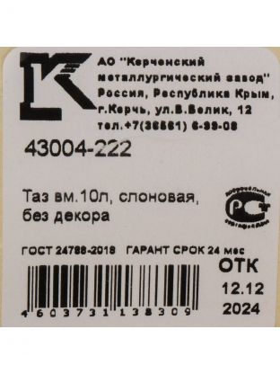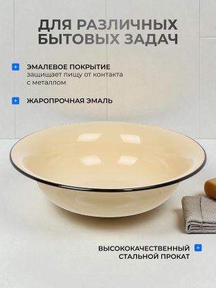 Таз металлический эмалированный объемом 10 литров – идеальный выбор для тех, кто ценит качество, практичность и стиль в каждом предмете для дома и дачи. Универсальная форма и элегантный цвет слоновая кость делают изделие не только функциональным, но и эстетически привлекательным элементом любой кухни или хозяйственного помещения. Модель «Керчь» с артикулом 43004-222 станет незаменимым помощником для выполнения различных домашних задач: от приготовления продуктов до хранения и мытья овощей и фруктов.