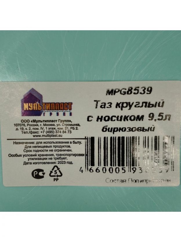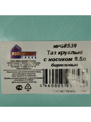 Таз пластик, 9.5 л, круглый, с ручкой, с носиком, в ассортименте, Мультипласт, MPG4685