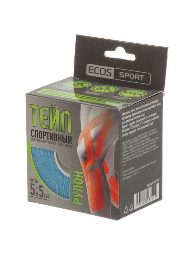 Тейп спортивный 5 м, 95% хлопок, 5% спандекс, в ассортименте, KT-5m, 005189