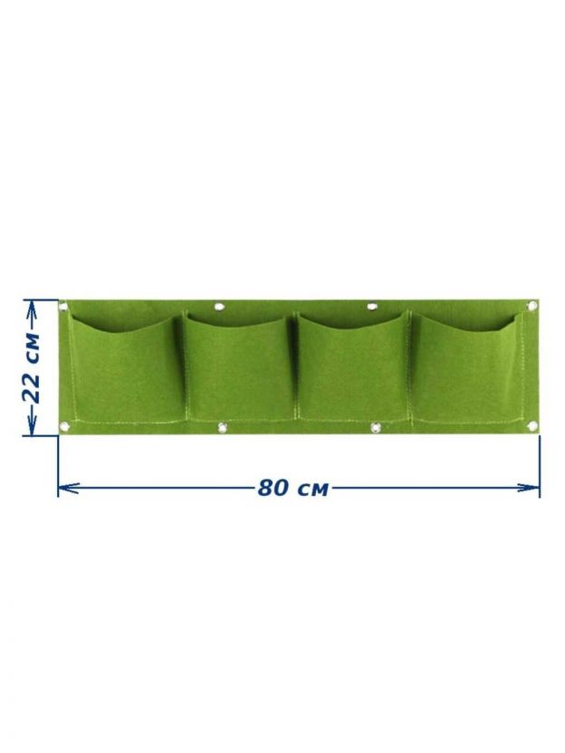 Текстильные грядки подвесные 22х80 см, 4 кармана, геотекстиль, зеленые, MP-У, ДС.070830
