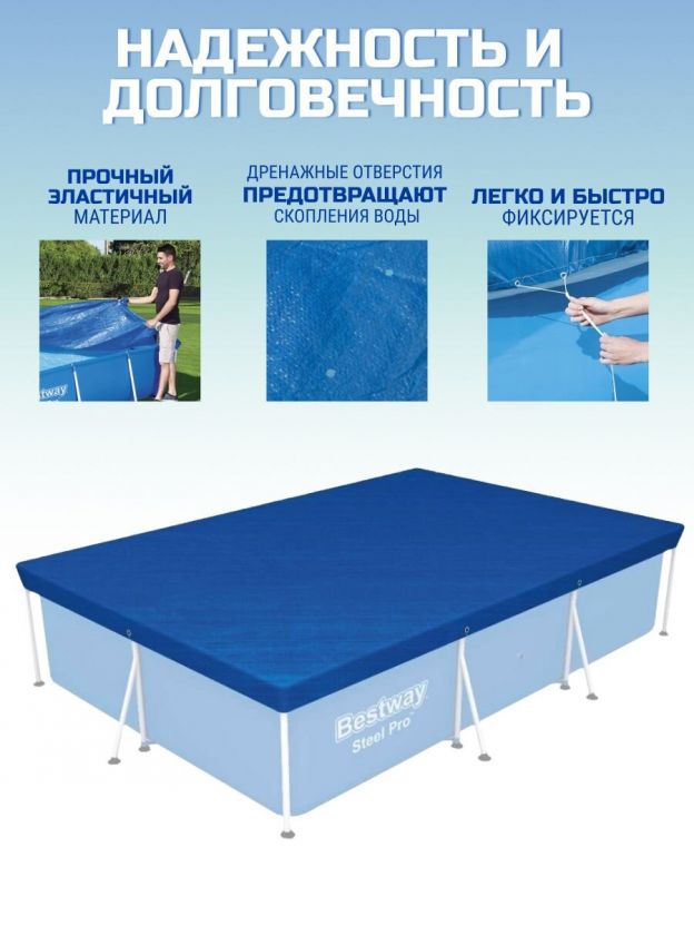 Покупая тент для каркасного бассейна от Bestway, вы получаете не только качественный продукт, но и уверенность в том, что ваш бассейн будет надежно защищен в любое время года. Это выгодное вложение в чистоту и безопасность вашего отдыха на свежем воздухе. Защита бассейна от загрязнений — это меньше времени на уборку и больше времени для наслаждения плаванием. Выбирайте качество и надежность с тентом Bestway!