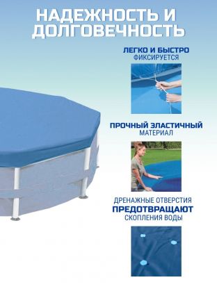 - идеально подходит для каркасных бассейнов диаметром 457 см: разработан специально для таких моделей, обеспечивая оптимальную совместимость и защиту.