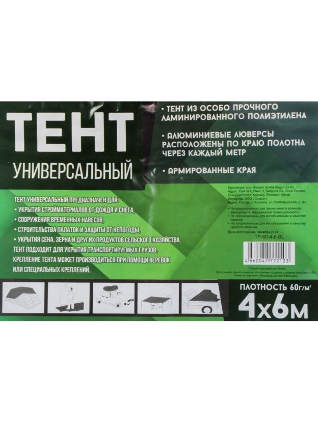 Тент универсальный TP-60-4-6-BL — оптимальный выбор для тех, кто ценит практичность, долговечность и удобство. Благодаря высокой устойчивости к влаге и ультрафиолету, материал эффективно защищает имущество, строительные материалы, садовую мебель, автомобили и урожай на огороде. Такой тент незаменим для дачного участка, пикника, временного укрытия техники, а также для организации пространства на строительной площадке или во дворе частного дома. Простота монтажа и компактность хранения делают его идеальным для сезонного и постоянного использования.