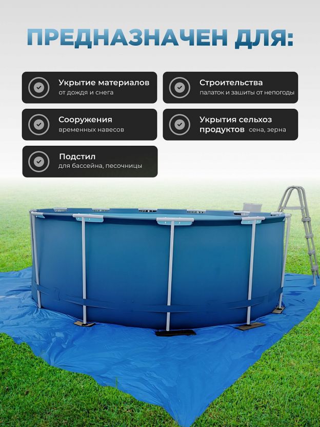 - большой размер 600х500 см — подходит для укрытия крупных объектов и создания просторных навесов;