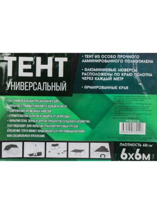 Тент универсальный, 600х600 см, 60 г/м2, люверсы через 1 м, TP-60-6-6-BL