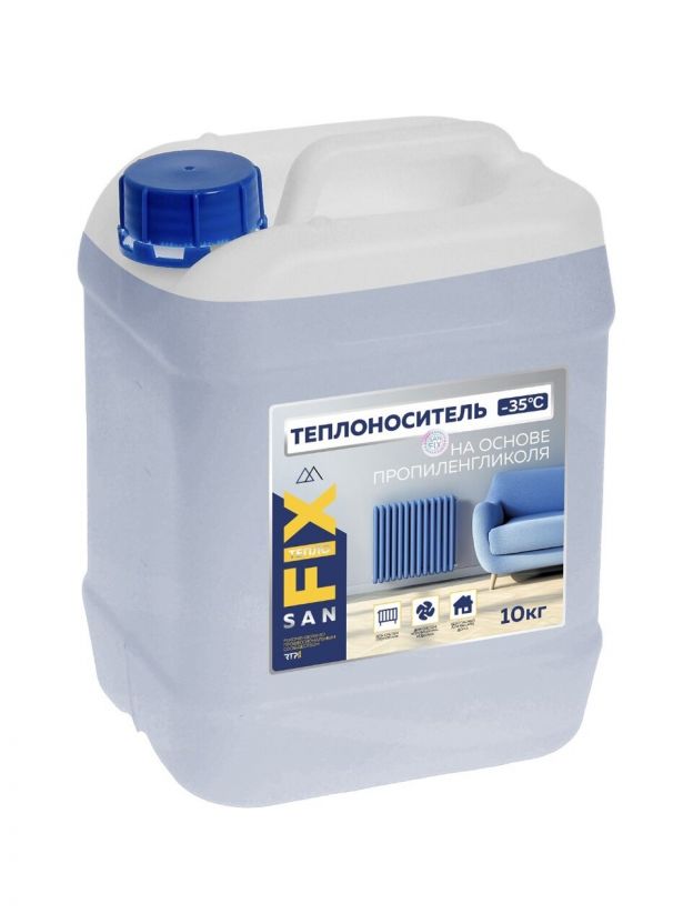Теплоноситель Sanfix на пропиленгликоле, 10 кг, -35°C — безопасное решение для систем отопления дома и дачи. Защищает оборудование, не горюч, не пенится.