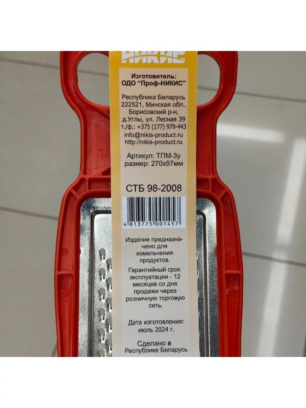 Терка 27 см, нержавеющая сталь, рукоятка пластик, навеска, Никис ТПМ -3у, 48120, красная