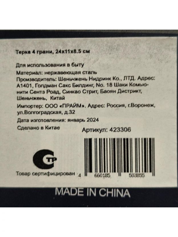 Терка незаменимый помощник для быстрого и легкого измельчения и нарезки продуктов. Она обеспечивает четыре разных типа резки, что делает ее универсальным решением для любой кухни. Изготовлена из нержавеющей стали очень прочной и долговечной, что обеспечивает максимальную эффективность и удобство использования на протяжении многих лет.