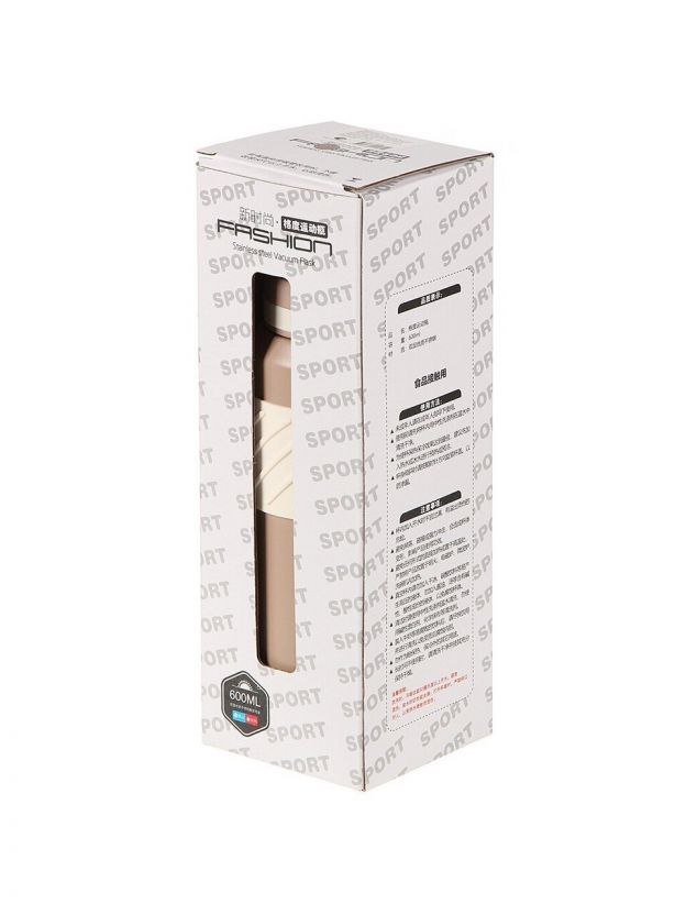 Термобутылка из нержавеющей стали 0.6 л Y4-9308: держит тепло и холод до 8 часов, стильный бежевый дизайн, удобно брать в город, спорт или поход.