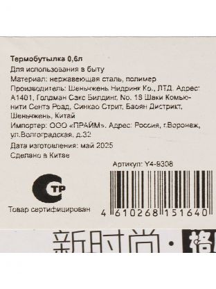 Оцените преимущества покупки термобутылки Y4-9308: выгодная цена, современный дизайн, продуманная эргономика и гарантия производителя.