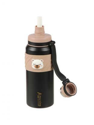 Термобутылка из нержавеющей стали 0.6 л с трубочкой: удобно брать в спортзал, авто или поход, напитки остаются горячими и холодными до 8 часов.