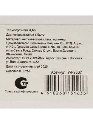 Да, термобутылка Y4-9307 сохраняет температуру напитков до 8 часов благодаря двойным стенкам из нержавеющей стали и герметичной крышке.