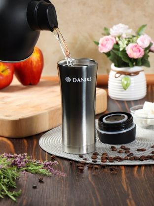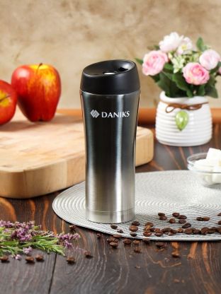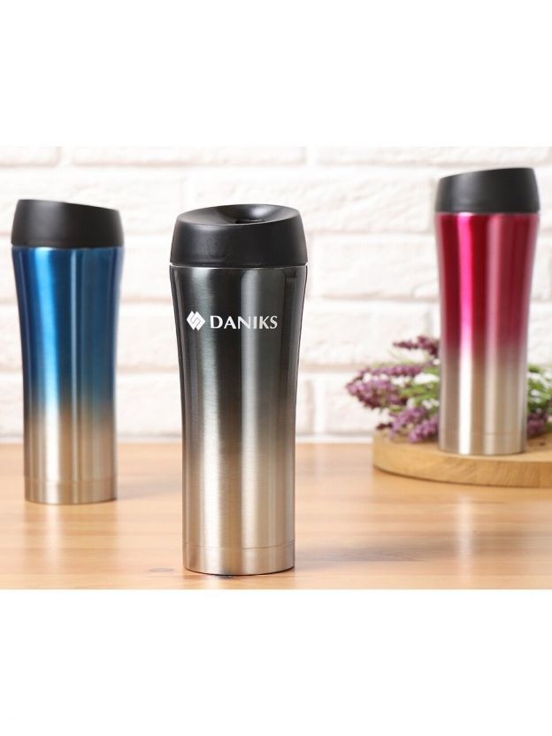 Термокружка Daniks 0.45 л удерживает тепло и холод до 2 часов благодаря двойным стенкам из нержавеющей стали.