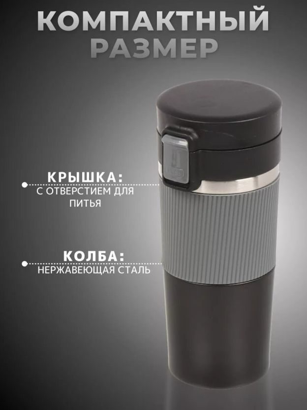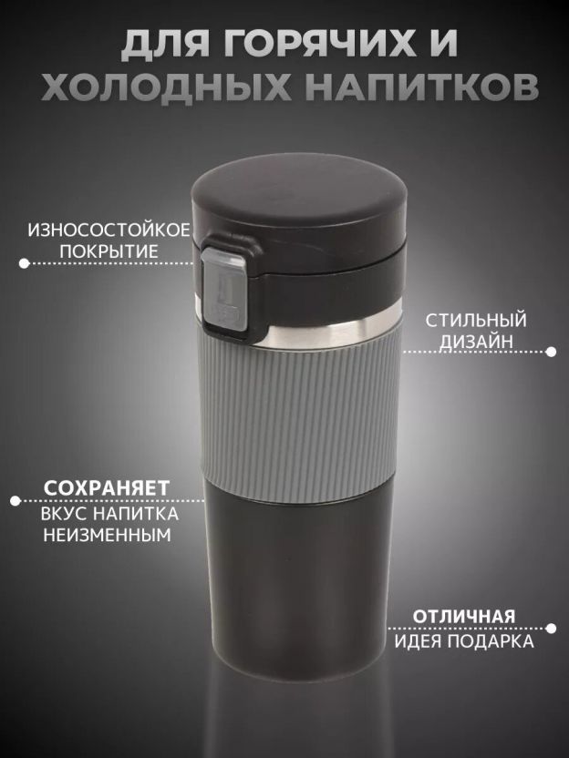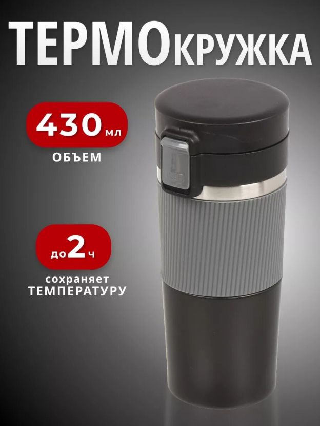 Если вы ищете, как выбрать термокружку для города или для спорта, обратите внимание на сочетание легкости, компактности (0.43 л) и универсального дизайна в черно-серых тонах — она подойдет и мужчинам, и женщинам.