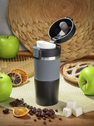 Многие спрашивают: «Чем отличается эта термокружка от других?» — здесь прочная колба из нержавеющей стали, которая не впитывает запахи и не окрашивается, а крышка с защелкой защищает от случайных проливов. В отличие от некоторых аналогов, эта модель сохраняет температуру до 2 часов, что оптимально для коротких поездок и ежедневного использования.