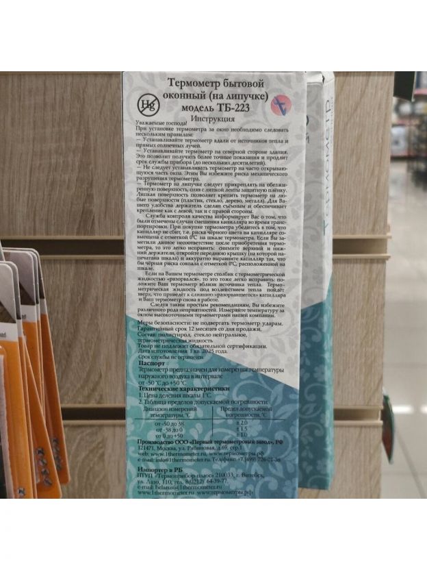 Термометр уличный, Липучка, картонная коробка, ТБ-223